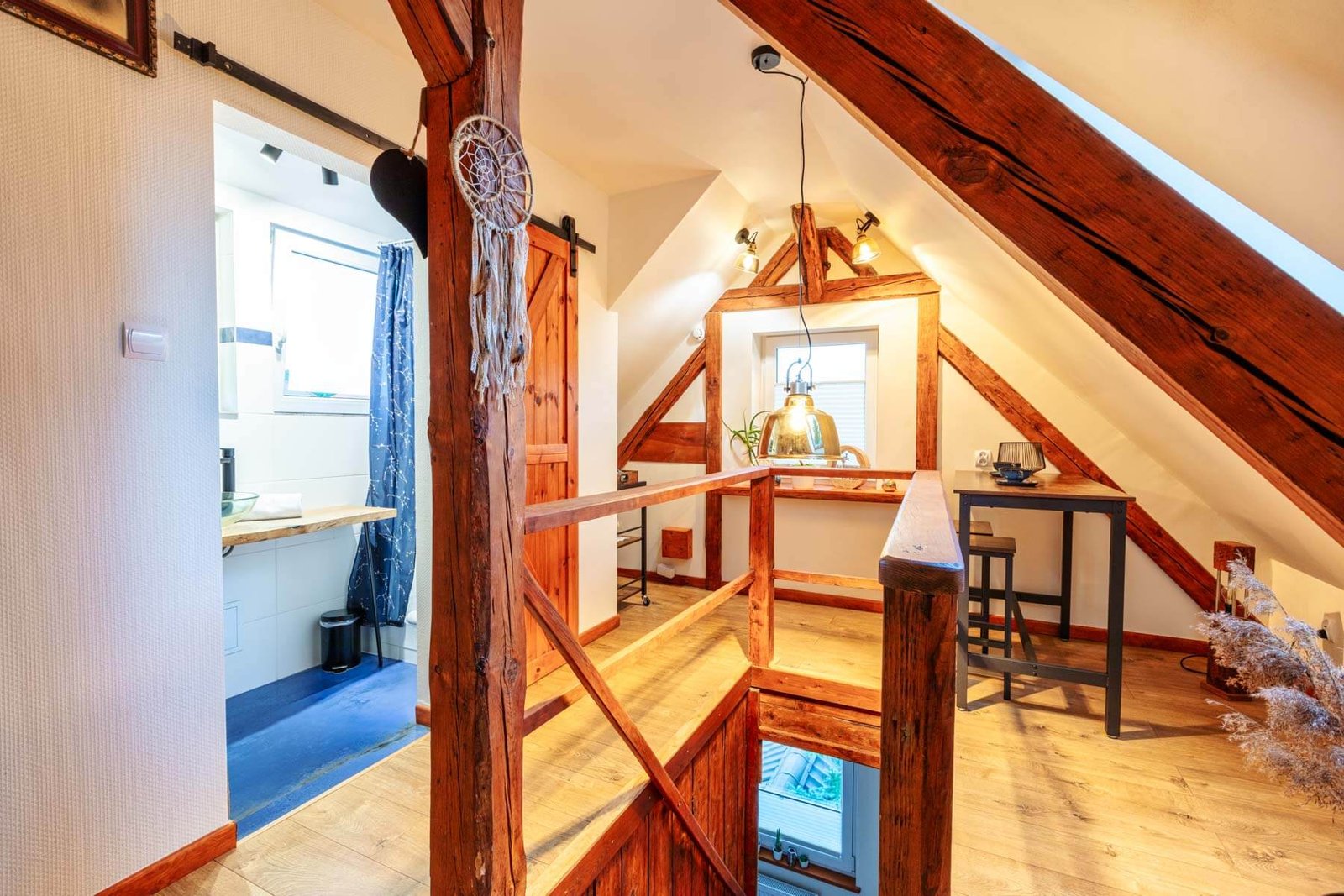 The apartment has been thoughtfully designed to provide maximum comfort for two adults. The interior delights with preserved historical elements, such as original vintage doors, which combine beautifully with modern, designer accents to create a stylish and harmonious space for relaxation.